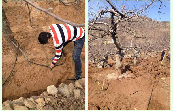 11.對(duì)于較粘重土壤,將滲灌管埋于一定土層深度,通過(guò)空氣壓縮機(jī)向土壤灌氣,解決根部缺氧問(wèn)題。